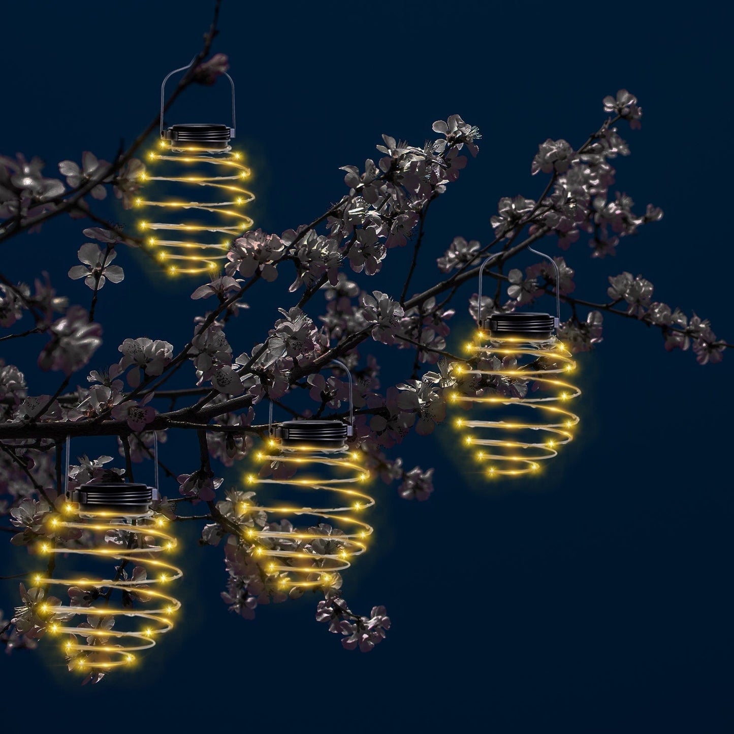 Lot de 4 Lanternes Solaires LED à Suspendre en Forme de Spirale Lumineuse