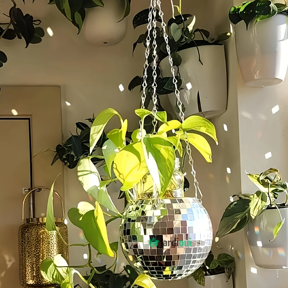 Conçu avec des pièces de miroir remplaçables et une chaîne métallique élégante, il est parfait pour sublimer vos plantes préférées.