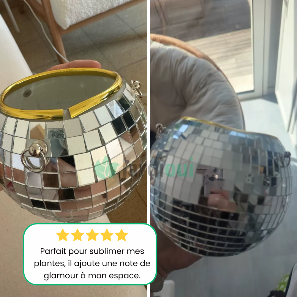 Inspiré des boules disco, ce pot de fleur reflète la lumière pour créer une atmosphère scintillante et joyeuse.