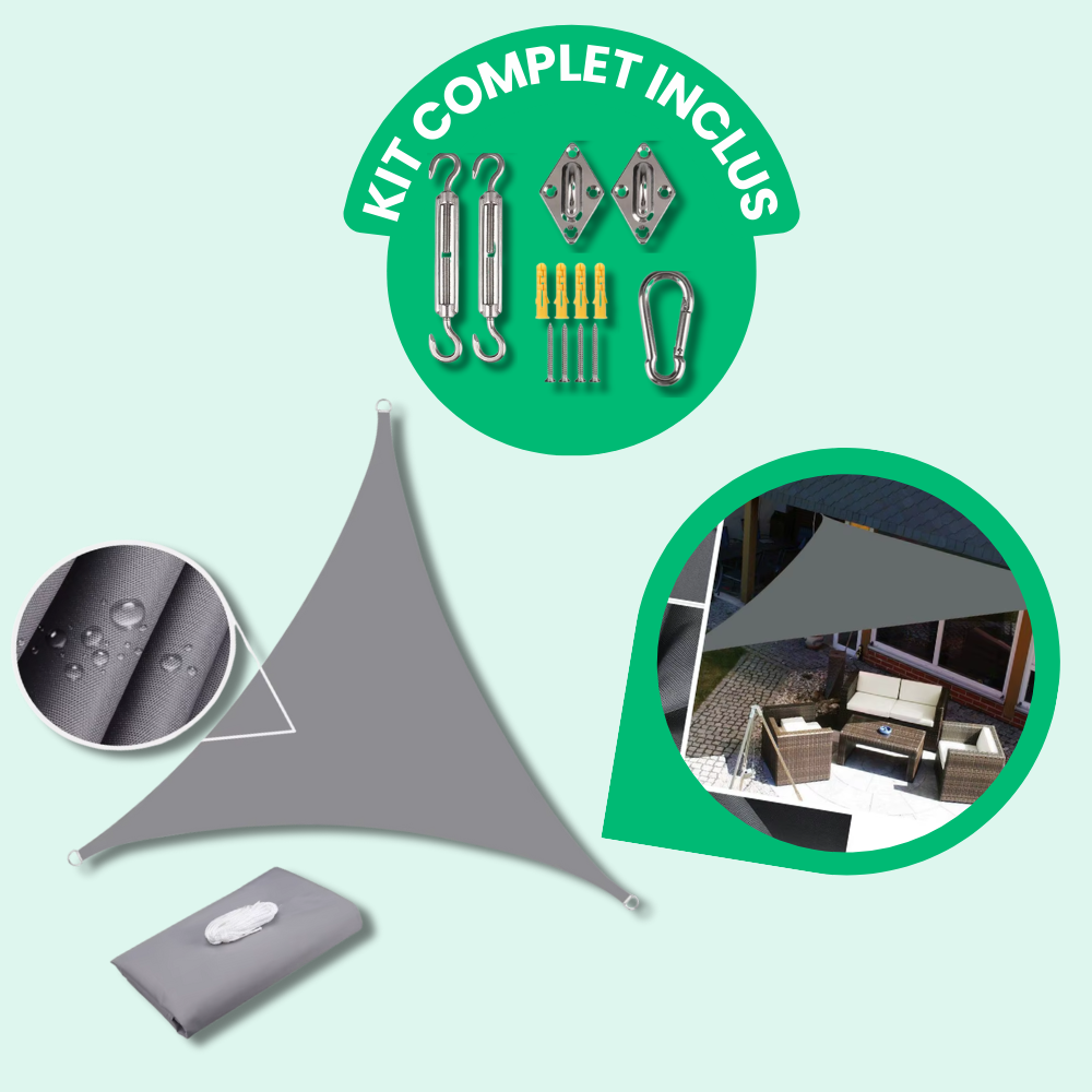 Équipée d’anneaux inoxydables et livrée avec 3 cordes robustes, cette voile s’installe rapidement entre :
